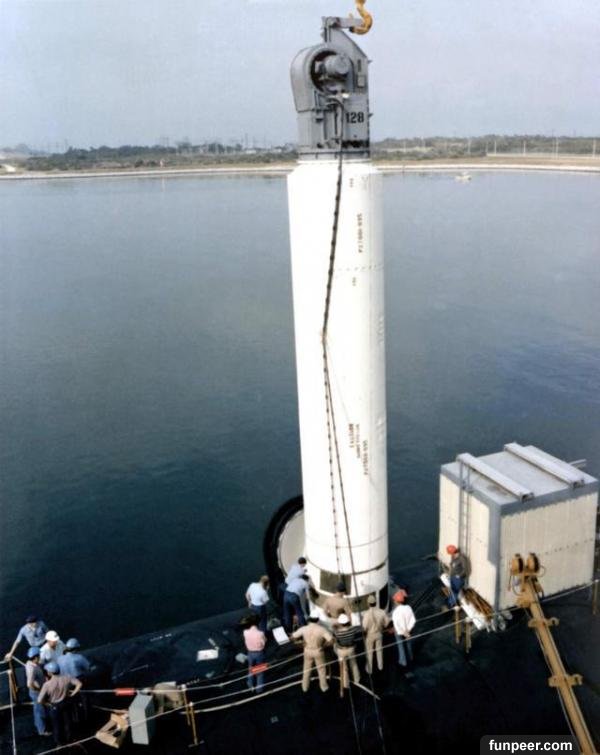 正在將三叉戟IC4型飛彈吊裝到俄亥俄級彈道飛彈核潛艇上(2)。