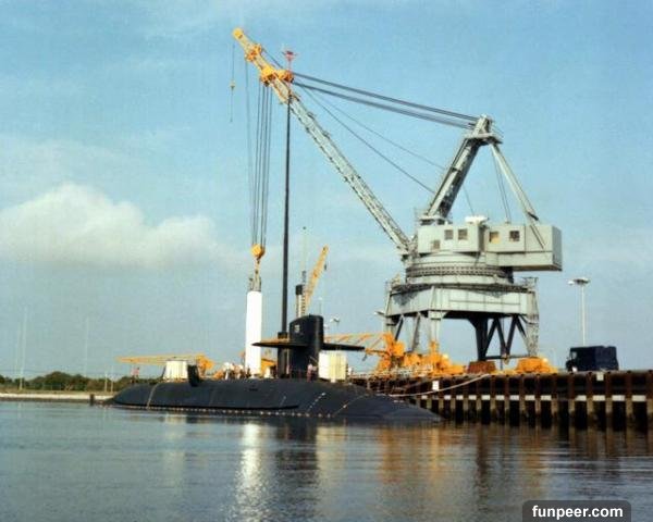 正在將三叉戟IC4型飛彈吊裝到俄亥俄級彈道飛彈核潛艇上(1)。
