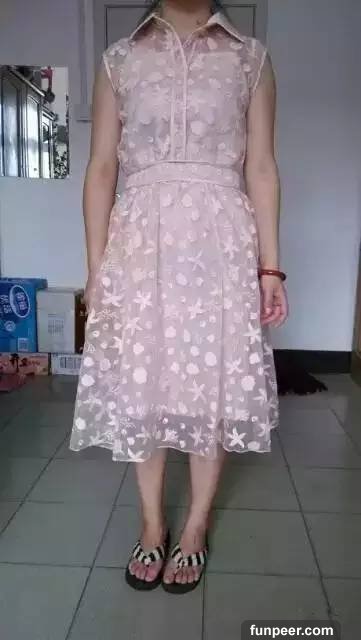 評論:「衣衣太美了,內襯也很捨得用料,搭配我新購入的黑白涼鞋正合適,很仙!姑娘,這質感的差別就是直接從baby身上的「裸色」到只能形容它為「肉色」,而且我發自肺腑地說:它真的很不適合搭黑白涼拖。