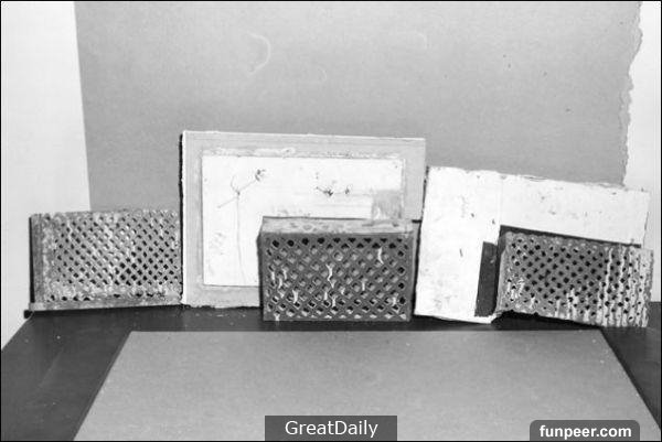 這些瓶子裡裝的是刷牆用的綠色塗料,牢房裡的通風柵欄也是逃獄計劃的一部分。小心地把材料切割粘合好,就偽造了一個類似下圖的通風口。