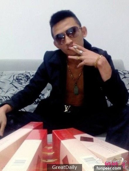 殺馬特凱少 自主創業在網上開起了小店,主營:十元1000粉、iPhone掛qq等業務、十分火爆,月賺800。喜歡抽玉溪(奢華)、光膀子穿西服、一隻手戴兩個戒指。猶記得他當年在駐馬店繁華街頭、提著剛買的鴻星爾克語笑嫣然、現如今他經常從淘寶上買一些lw或者gocci的腰帶、一米五九的他穿ck內褲剛好到胸。