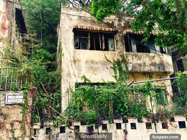 走上去一段路後,發現了那裏好幾間都是空無一人、破破落落的舊別墅。
