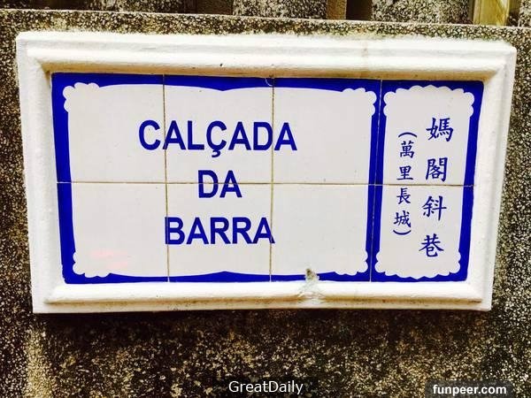 媽閣斜巷:沿著媽祖閣旁邊的上坡路走,那裏便是媽閣斜巷。值得一提的是,據說此處為當年澳門古城牆(已拆毀)的一段,因此這段半山上的斜巷又命名為「萬裏長城」,甚至連路牌上也保留了這個稱呼(如下圖),因此顯得相當有趣。