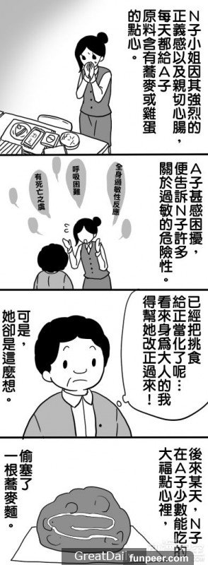 如果一個人因為另一個人的善意而遭遇迫害,這是否應該算作故意傷害呢?近日,網上有一則來自日本小漫畫突然火了起來,漫畫講述一個喜歡吃蕎麥和雞蛋的阿婆,一定要把這種食物推薦給對二者過敏的A子小姐,她總是認為A子小姐不是對蕎麥和雞蛋過敏,認為這只是減肥,是挑食,所以有一天把蕎麥和雞蛋加進A子小姐的食物里,造成A子小姐的死亡。這則故事告訴我們向別人講述描繪自己的世界觀沒錯,但不要將自己的觀點強加於人,否則總有一天也會成為善意的殺人者。