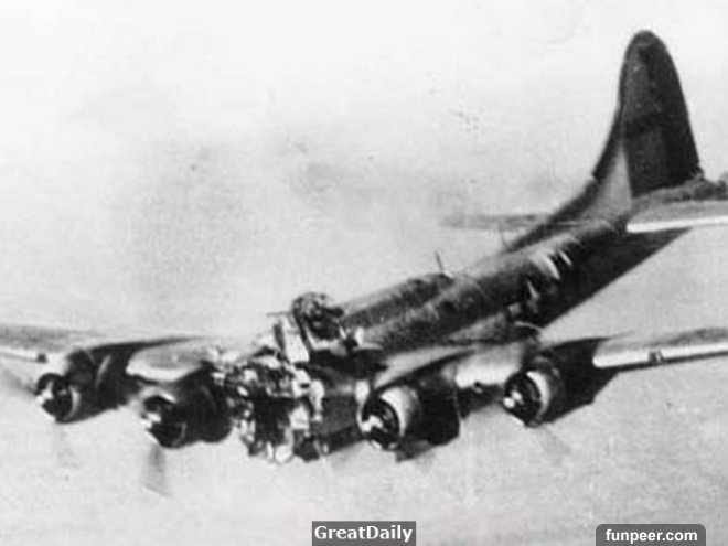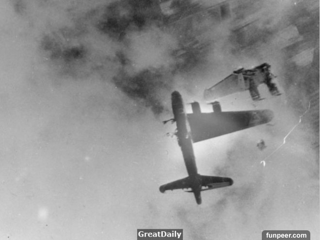 超過10萬名盟軍轟炸機機組成員在歐洲上空殞命。圖中是一架B-17F轟炸機被德軍戰機擊落。