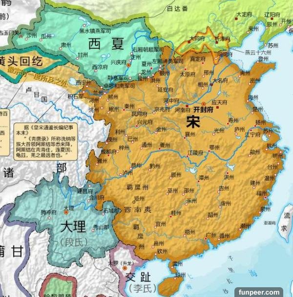 圖6 大宋帝國。大宋帝國雖然重文輕武,但是,由於正北,西北一直面臨威脅,所以,一直開戰百年,實際戰鬥力不弱。