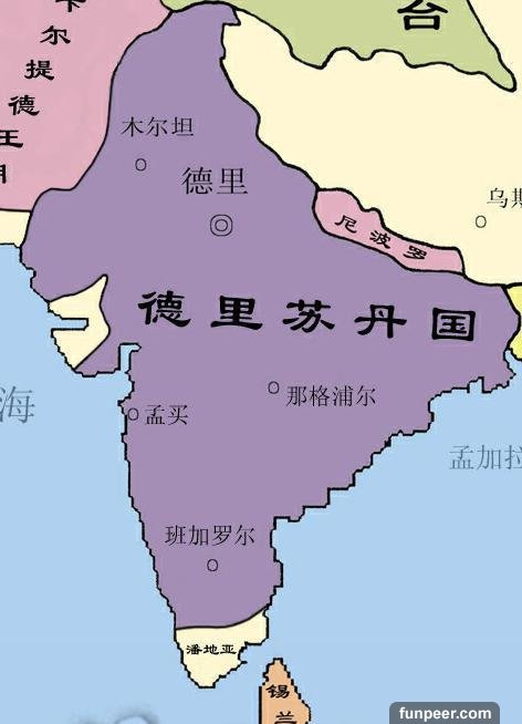 圖7.1 德里蘇丹國。三國對峙百年後,印度終於迎來了真正的統一。可惜,統一的是外來征服者-德里蘇丹國。外來征服者與印度本土居民齷齪不斷,導致統一還是沒有持續很久。