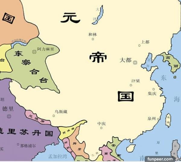 圖7 大元帝國。蒙古帝國被稱為世界古代史上最強大的帝國。作為蒙古帝國的直接繼承者,大元帝國在武功方面,也毫不遜色。