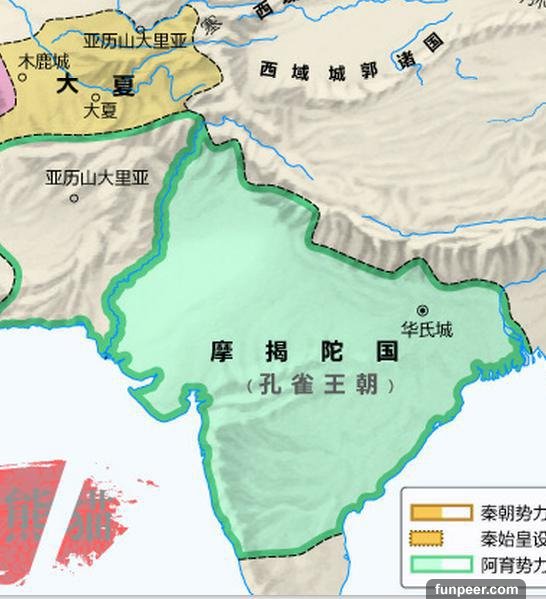 圖2.1 孔雀帝國。孔雀帝國就像是一個山寨版的大秦帝國,雖然剿滅十五國,結束分裂。但是,難度完全無法與秦始皇統一六國相比。