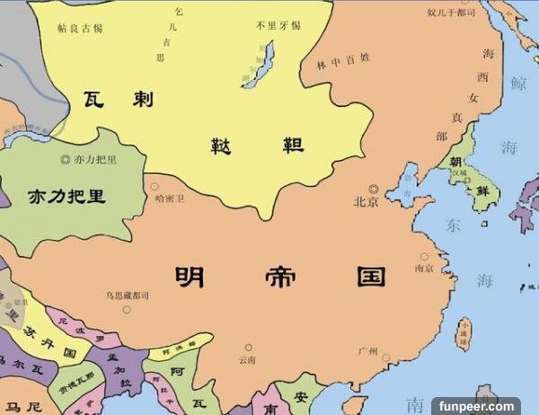 圖8 大明帝國。大明帝國建立後,洪武大帝,永樂大帝多次北伐蒙古解決威脅,並派鄭和下西洋,宣揚國威,大明帝國國威達到鼎盛。