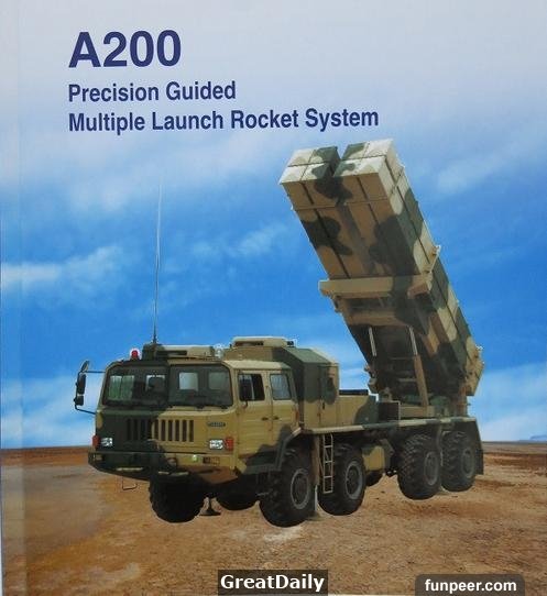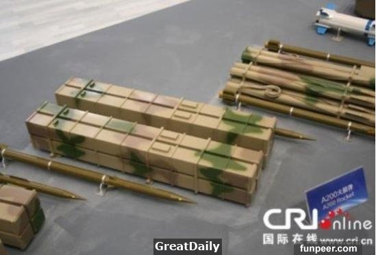 而中國生產的A-200火箭彈性能非常優秀,裝備末端制導,射程超過200公里,在世界火箭彈技術上中國都可以算的上是前列圖為A-200火箭彈實體