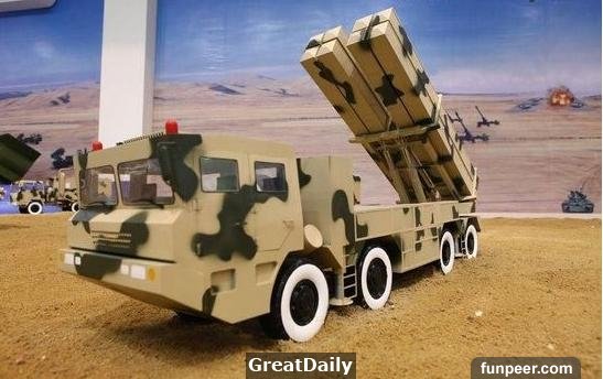 據悉這是一種將中國生產的A-200型火箭炮安裝在白俄羅斯8輪重型越野車底盤上的新型遠程精確制導火箭炮,射程可達200公里。珠海航展上亮相的中國新型火箭炮模型,名為A-200