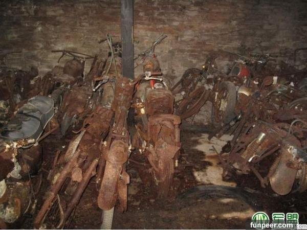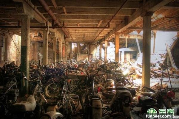 原來這個倉庫是一個巨大的摩托車墳場,裡面密密麻麻的堆滿了破舊的摩托車,各式各樣的摩托車都有,場面非常的震撼。
