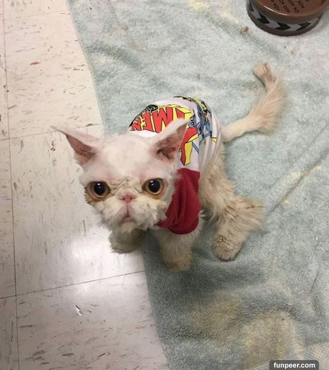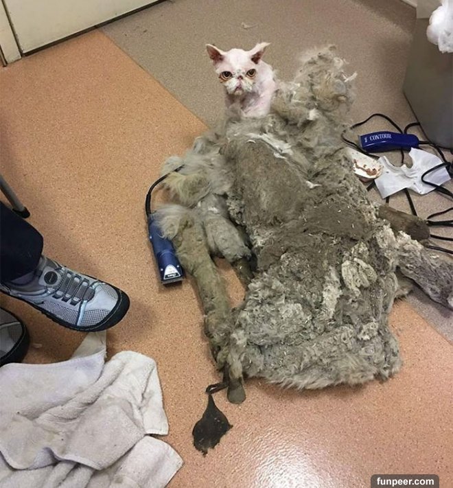 長年沒被照顧的波斯貓,七磅的牠卻披著「五磅厚毛」,剃掉後大家都想哭了!