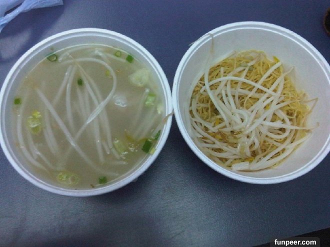但蠻多人詢問,為甚麼不是麵在上、湯在下,就有網友跳出來回答,老闆的用意是熱湯沖下去,下層的肉燥和油蔥香氣才會出來,這是小吃店的撇步!不過,最後有人出來澄清,這其實是老闆搞笑才po的,平常真的是分開裝。