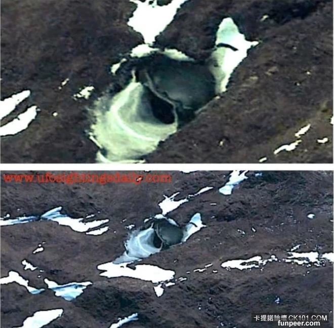 根據最近的Google Earth的影像顯示,當地確時出現了許多如下圖的洞口,有人猜測是幽浮基地的出入口,也有人猜測是二戰時期德軍建設的秘密堡壘。