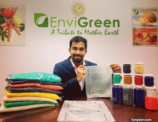 他就是AshwathHedge,也來自印度,這款塑料袋讓他年僅24歲就創立EnviGreen公司,當起CEO,好多有錢人和國家機關都找上門來。