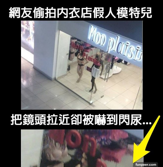 網友偷拍內衣店假人模特兒!!把鏡頭拉近卻被嚇到閃尿...