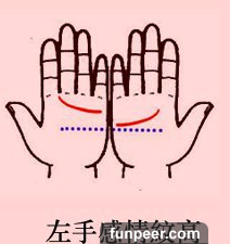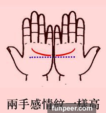 這種人最可能和獲得家人朋友都喜愛、認同的對象結婚。2.右手感情線比較高![]()