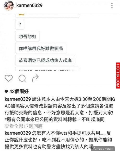 之前有個POST大爆有個VS MEDIA既youtuber kaman choi做援交,仲有圖有真相添….但最後佢聲稱比黑客入侵,事情告一段落~但琴日疑似佢既援交片流出...私影妹Ka Man Choi援交片backup: hothk.com/64768「條女真係好雞格仲記得之前翻版高皓正搵佢影相 我仲特登搵條女ig 係幾正既, 樣唔算好靚, 但眼大大又大波 仲要玩cosplay, 著到鬼咁暴露 佢條仔就慘, 都唔知條女比幾多人啪過 不過我都想啪」