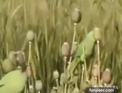 通常,鸚鵡只要在群體中就會不自覺發出聲音。但這些鳥現在太賊了,他們不發出任何噪音時,直接撲向田地,咬下罌粟就飛走。一系列動作都太快了,當地農民根本抓不住它們。