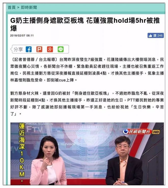 花蓮大地震後,台灣記者完全「發揮實力」報導被網友整理翻出 硬把G奶跟地震扯上關係的意義是?