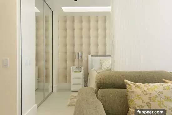 衣櫃設計有效地節省臥室空間,其櫃門採用鏡面材質,方便了主人整理衣著更充分地擴闊了空間感。