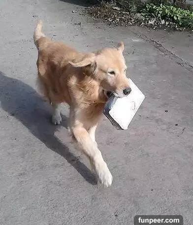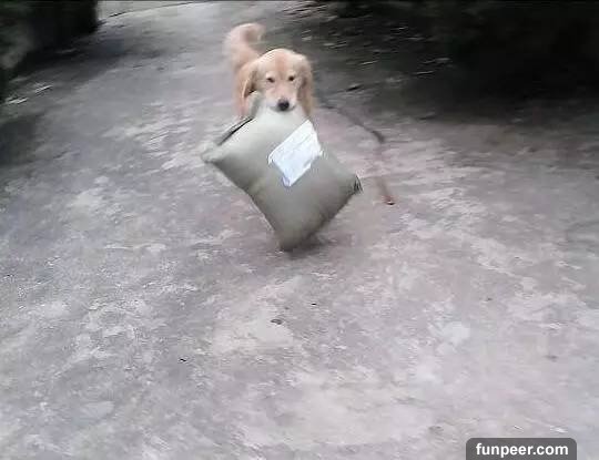 剛開始我覺得毛毛就是一時新鮮好玩,所以就讓它叼着走,可是從那以後,毛毛就把這當成了自己的任務!不管大件小件,都一定要搶着拿!