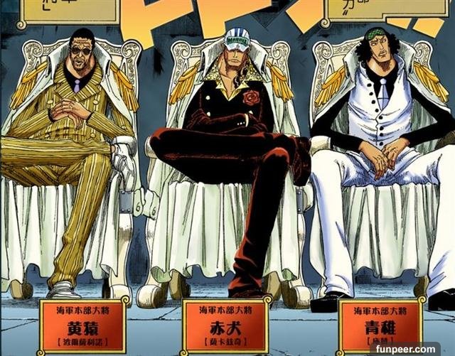 海軍總部三大將,實力超群,原因呢?因為海軍擁有都只有三位大將,也就是實力最強的三位中將來擔任地!不管這裡有多少中將、少將,幾十萬的海軍士兵,大將唯有三位!這三位的實力,也是因為這個原因,才得以保障地!!