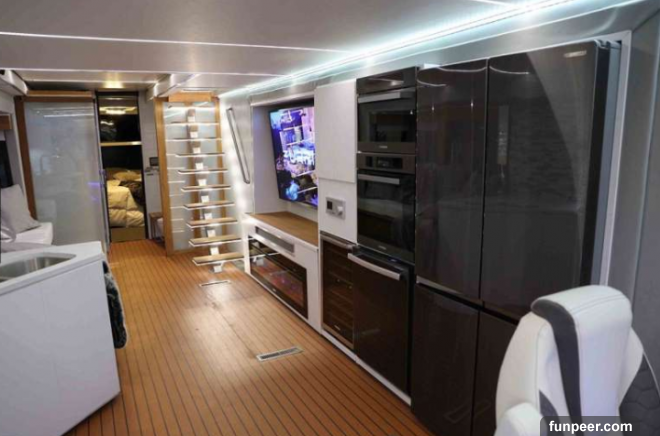 另外車上的廚房中也附有微波爐、洗碗機、冰箱、烤箱等設施,而且最誇張的是還有一台專門用來保存葡萄酒的冰箱...