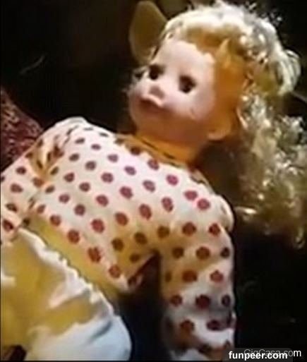 在影片中,一個男子跟金髮娃娃說話後,娃娃轉向他,向他眨眼。另一人把娃娃拿起來時,娃娃對他說「謝謝」,把他完全嚇壞了。當娃娃慢慢地轉頭時,其中一人把娃娃反過來打開,發現它的裏面是沒有電的。