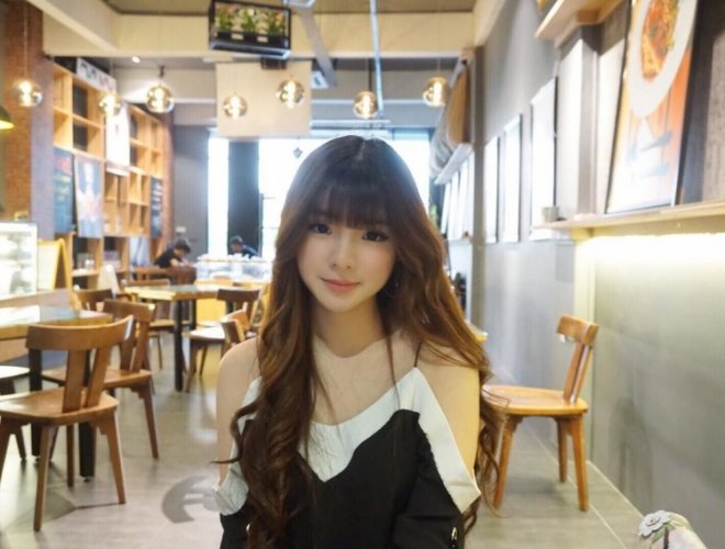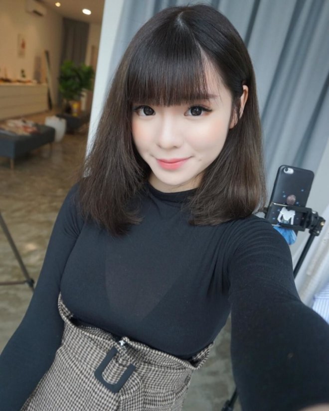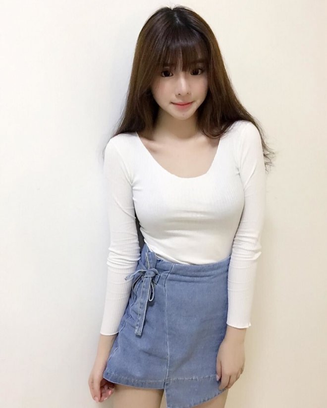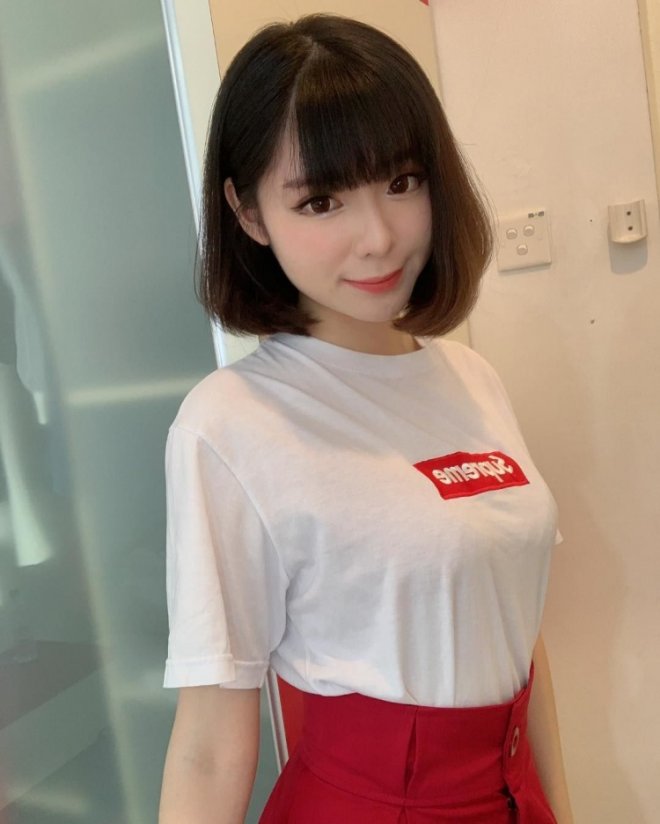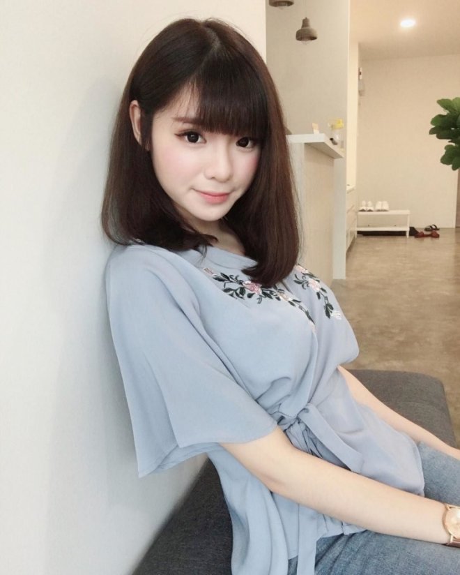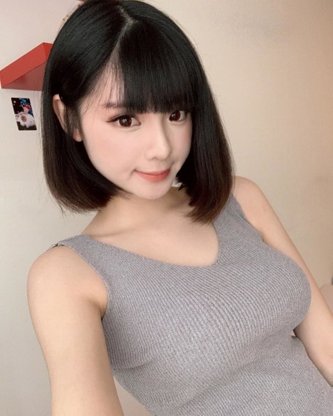 長相清純可愛,白淨的臉蛋加上黑短髮