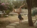 糗爆!妹子「下衣失蹤」做瑜珈跌倒..遭狗秒騎上去老