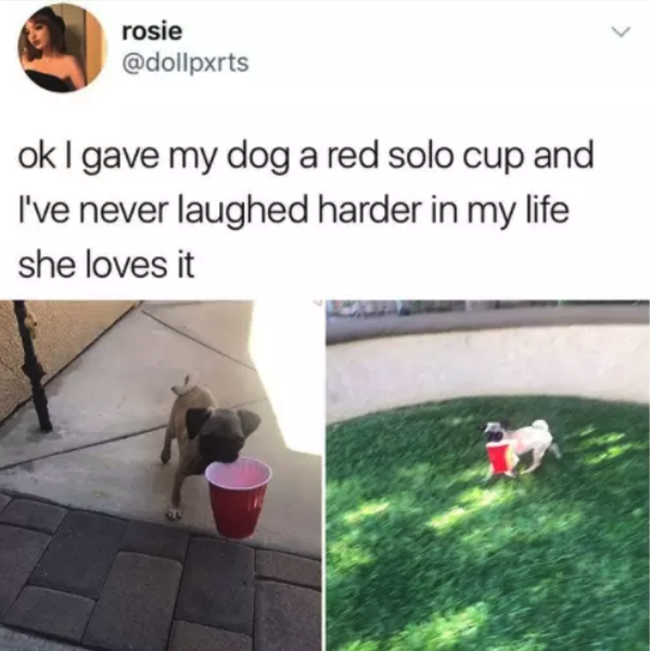 ▼我給了狗狗一個紅色的杯子,牠的表現讓我笑翻了,看來她真的很喜歡。