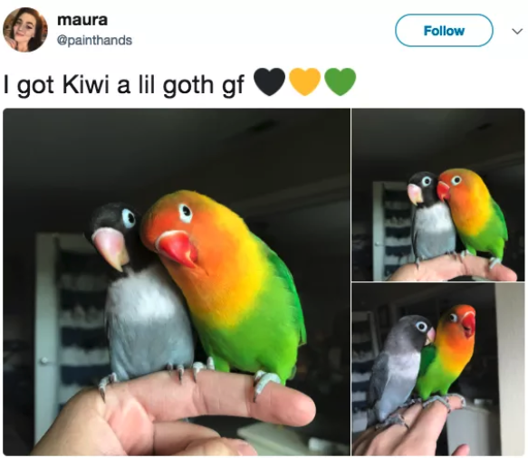 ▼我幫鸚鵡 Kiwi 找了一個哥德風的女友。