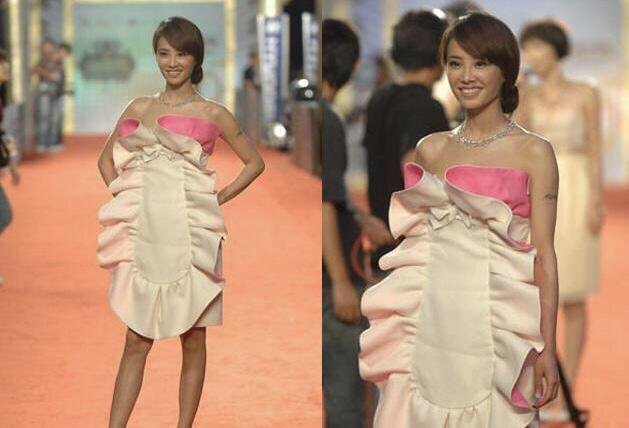 賈靜雯這位大美女,也被這件禮服給坑了,本來一件美美的透視禮服非常的搶鏡,若隱若現的,感覺蠻性感的!可是外邊的毛毛的褶皺真心讓人欣賞不來啊!簡直酷似一隻「貴賓犬」!再配上那雙玫紅色的高跟鞋,真是絕了!下次真的不要穿類似的衣服好嗎?把女神的顏值都拉低了!
