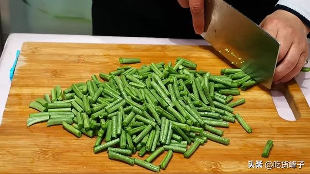 1、洗凈的豆角去掉頭部,切成3裡面的段。