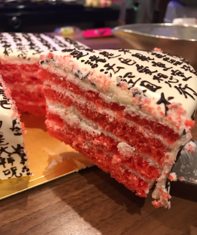厭倦了傳統的生日蛋糕?也厭倦了以可愛的卡通人物為主角的蛋糕?日本就有一間蛋糕店分享了一款「特別的生日蛋糕」。蛋糕店店長的朋友想為自己女友慶祝生日,又不想平平無奇,於是委託他製作了一款前所未有的「般若波羅蜜多心經」生日蛋糕,網民就爆笑問「係咪好想超渡自己女友?」