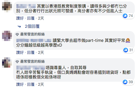 不過港媽都唔執輸,以「抵你成世打呢份工啊!做埋晒呢啲低級工種!」回敬。網民就表示「真係咁高級就唔洗幫襯我地呢啲貧民窟啦!」