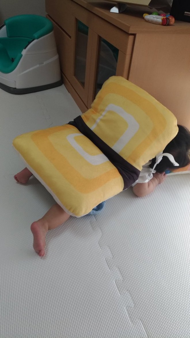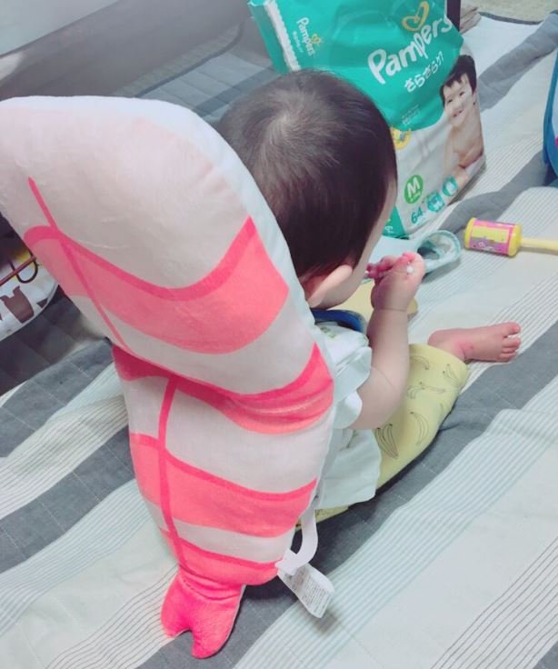 小朋友揹上護頭枕變身壽司,看起來非常療癒。各位爸爸媽媽是不是很心動,也想買一個給自家的寶貝玩呢?