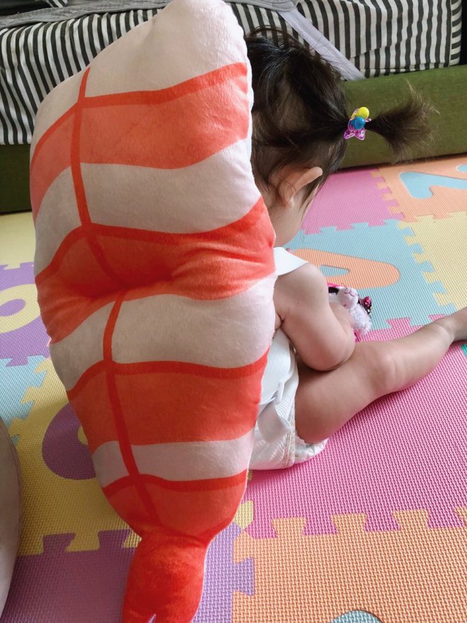 超萌護枕一揹變「寶寶壽司」 家長大愛:有行走的蝦蝦耶~