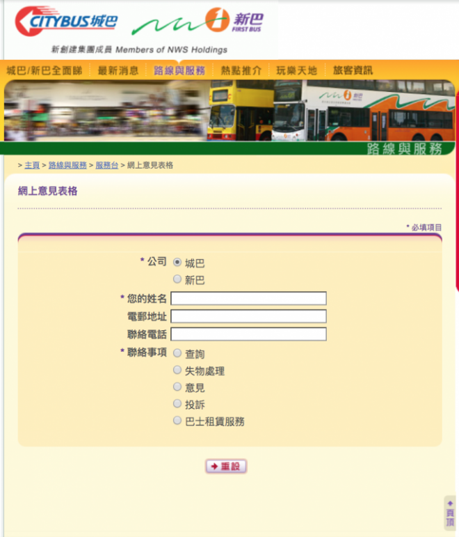 城巴網上意見表格