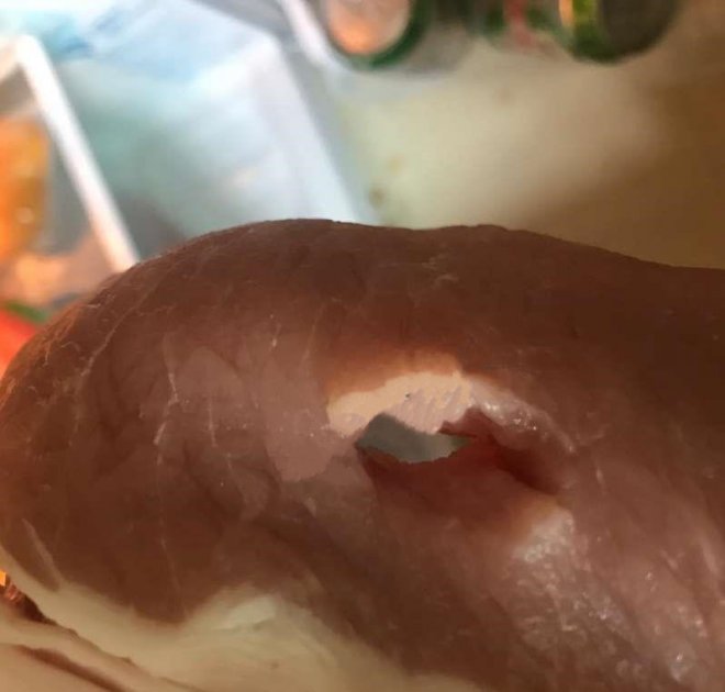 日前某天晚上因為她連續上了好幾天夜班有點不舒服,拒絕了男友的求歡,還開玩笑表示:「冰箱有塊豬肉,你可以捅兩下,感覺應該不會比我差」,就出門去上夜班了,沒想到回家後發現豬肉真的變成這樣了。