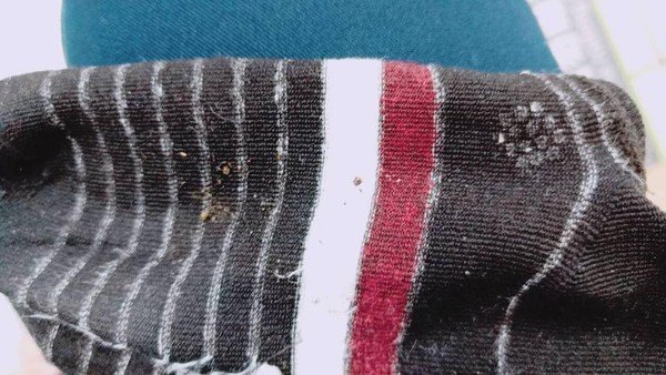 有女網友在臉書社團「爆怨公社」發文說,覺得自己的妹妹有夠沒神經,因為對方竟然在上班上了4個多小時後,才發現自己把付有「神秘蟲卵」的襪子,穿在腳上上班,然而卻完全沒有感覺,直到最後好像有點怪怪的,翻開來看,才發現多達14顆的蟲卵!
