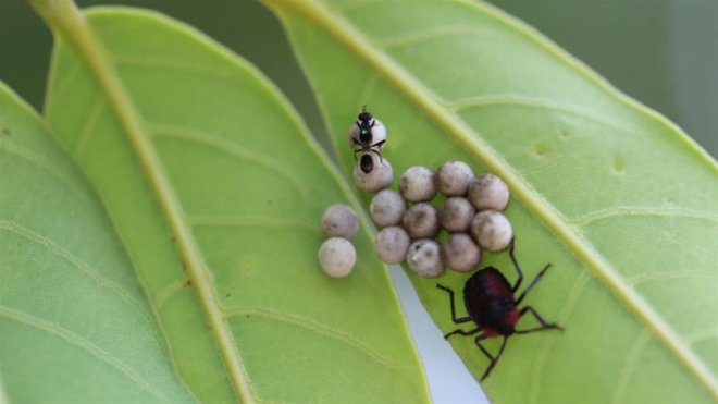 因為妹妹的感知能力實在太不敏感,讓她有夠受不了,不過網友一看就發現,其實這些蛋都是「荔枝椿象」的,這些蟲又被稱為「臭屁蟲」、「臭椿象」,是源自於中國的一種害蟲,幾年前全面入境台灣後,造成台灣農業不少損失,尤其牠們會噴出對眼睛或是皮膚有不好問題的汁液,如果不小心接觸到,就可能有狀況發生。