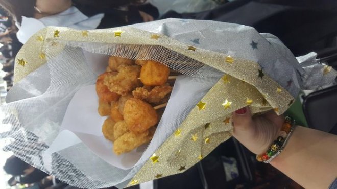 有網友就曬出自己收到的生日炸雞花束,看起來也太可口了吧~~~