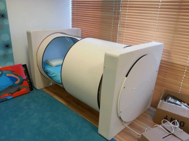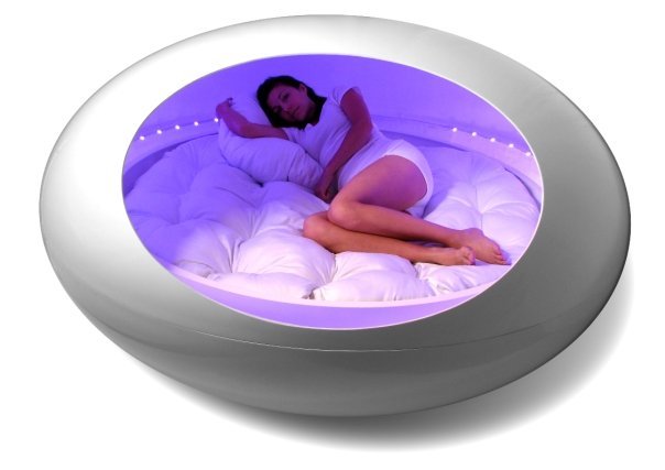 ▼2.這款The Tranquility Pod智能床呈蛋形船艙形狀,輕柔的震動,隨著心情變化而改變的燈光,還有使人放鬆的音樂,營造出非常舒適寧靜的氛圍,能夠有效緩解失眠。