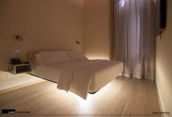 ▼6.用一根單柱固定於地面的床,看起來就像是漂浮在半空,清潔變得輕而易舉。
