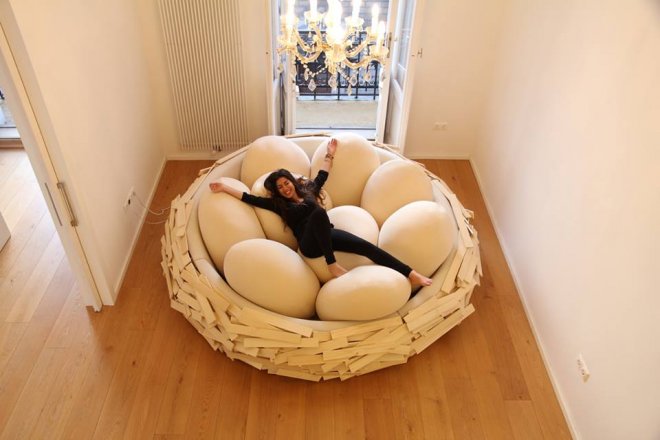 ▼7.巨型鳥巢床,在鳥蛋抱枕上睡覺超舒服。