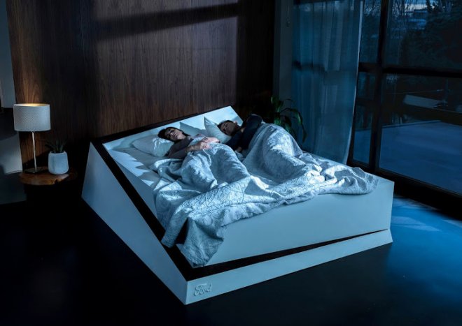 ▼8.福特智慧床,輸送帶會將「過界」的另一半自動送回自己的位置。